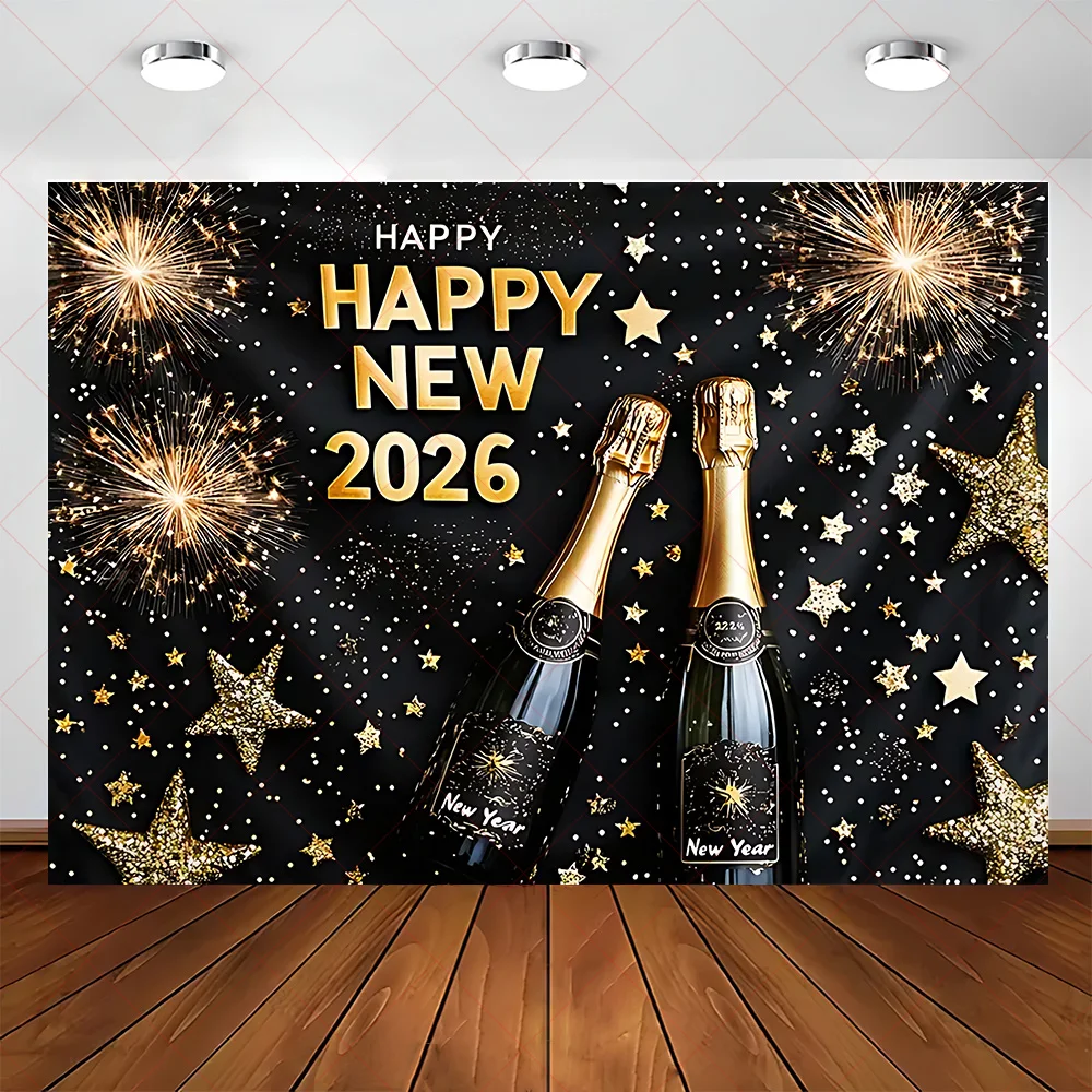 2026 Frohes Neues Jahr Party Hintergrund Banner Glitzer Uhr Champagner Hintergrund Gold Ballon Home Party Dekoration Fotografie Prop