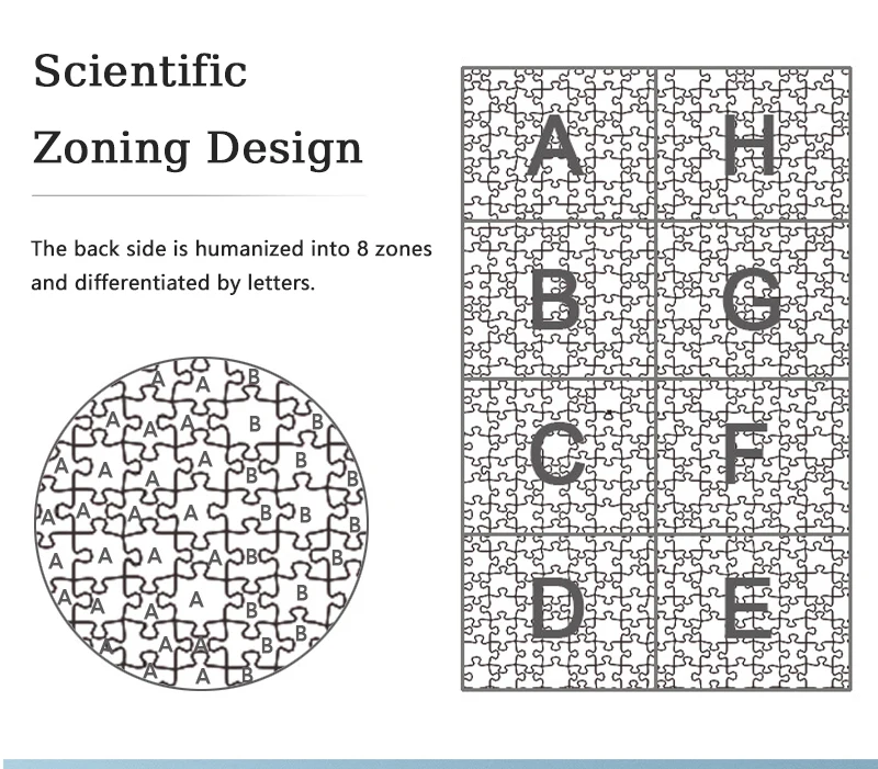 WISSENSCHAFTENDES ZONING-DESIGN:Die Rückseite ist in 8-Zonen humanisiert und durch Buchstaben differenziert.