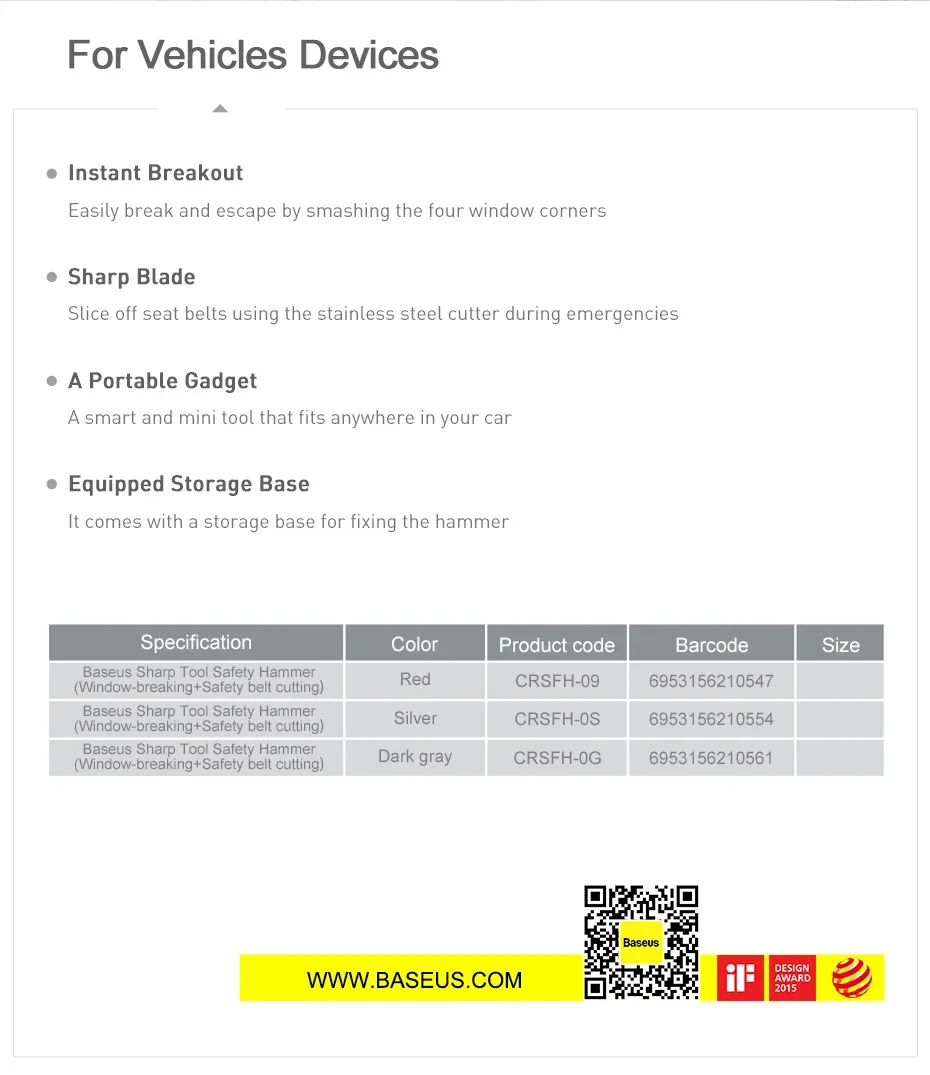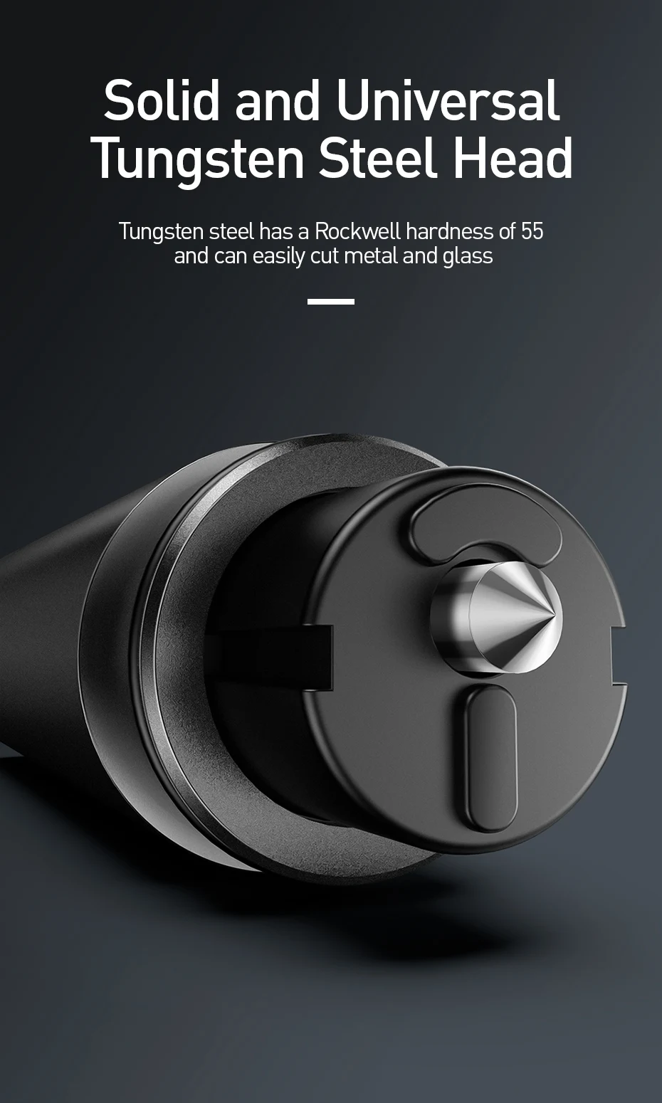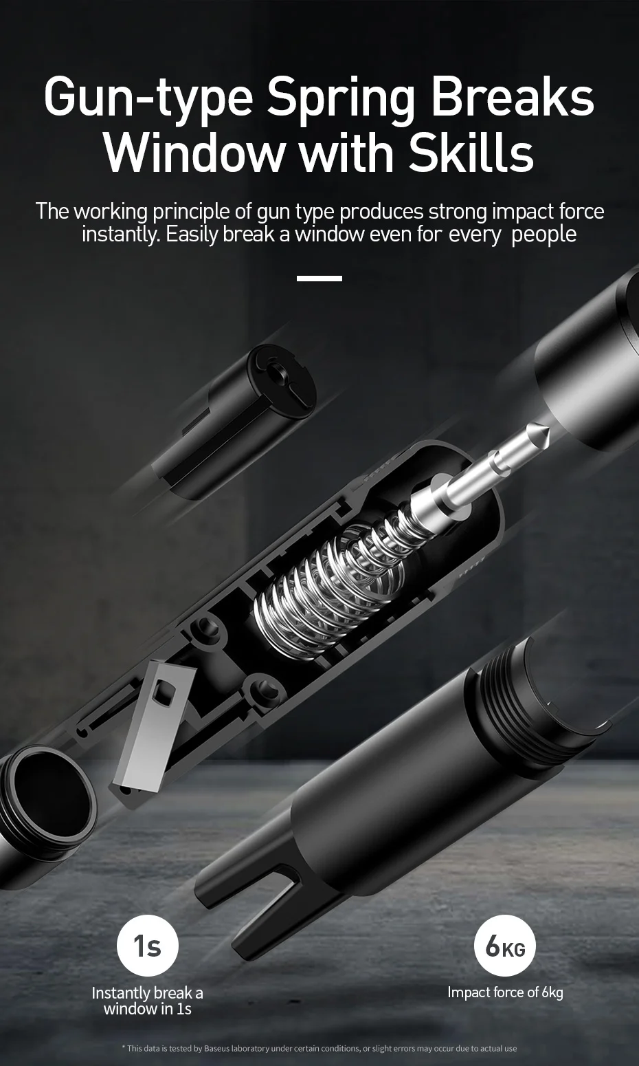 Durch den Einsatz des Prinzips des mechanischen Fensterbruchs können Sie das Fenster auch unter Wasser problemlos zerbrechen. Der integrierte Edelstahlschneider hilft Ihnen, im Gefahrenfall ein Sicherheitsgurt schnell und einfach abzuschneiden.