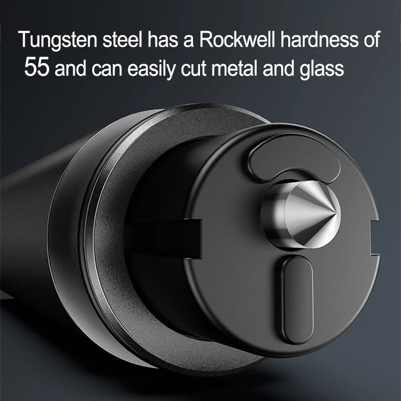 Spezieller Sicherheitshammer zum Zerbrechen von Fenstern, sich immer auf Gefahren vorbereiten. Zerbrechen Sie die Fenster des gesamten Autos und schneiden Sie den verklemmten Sicherheitsgurt ab.