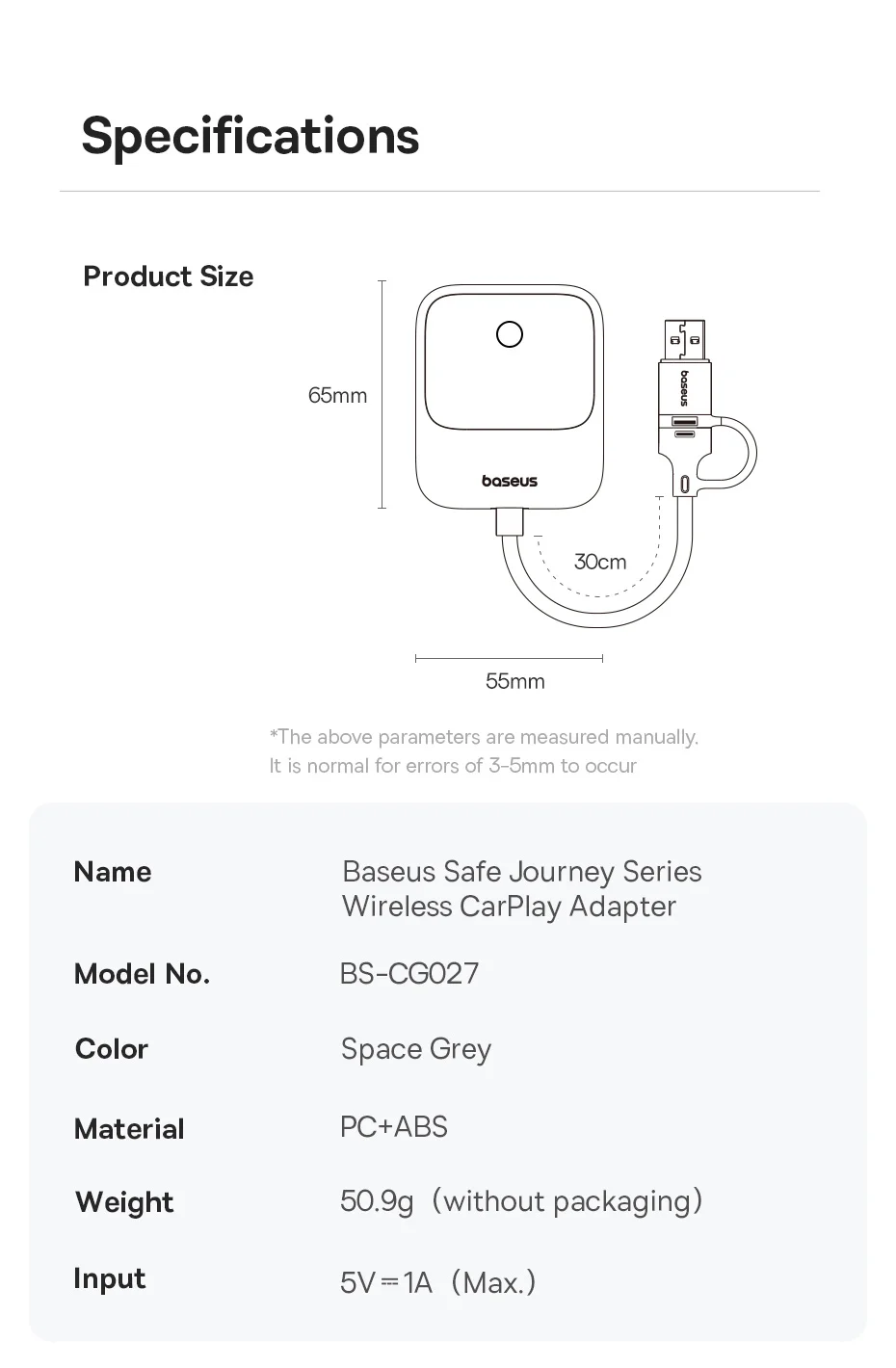 Baseus Carplay Wireless Adapter Smart CarPlay Box Dongles verkabelt zu Wireless Carplay Bluetooth 5.0 WiFi Carplay Adapter Auto Auto