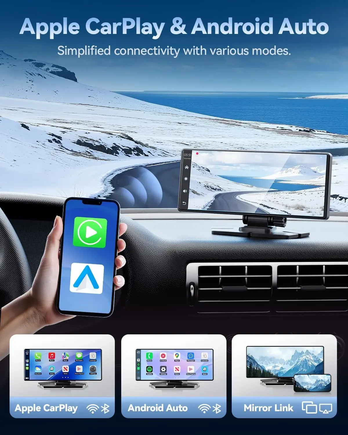 Carplay-Bildschirm für Auto, 8,1-Zoll-tragbarer Touchscreen-Autoradio mit Android Auto, 2,5 K Dashcam, Autoradio-Multimedia-Video-Player