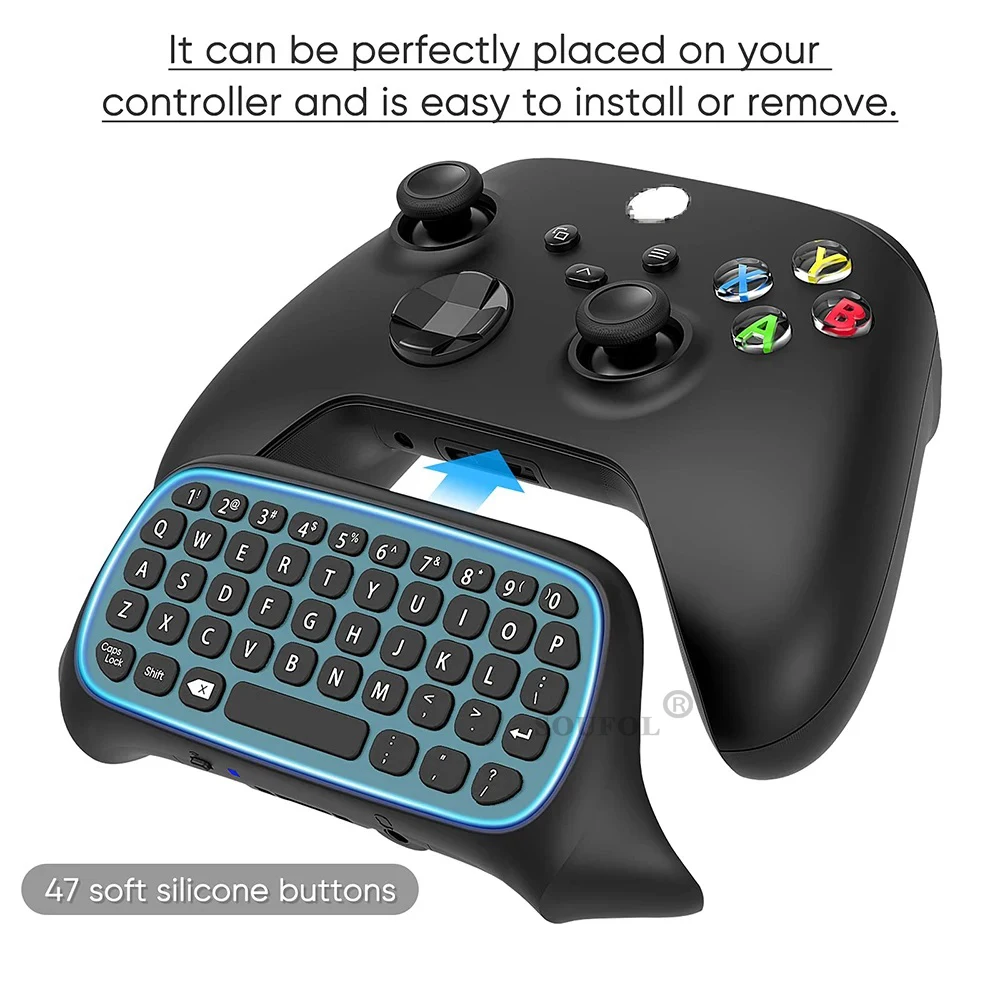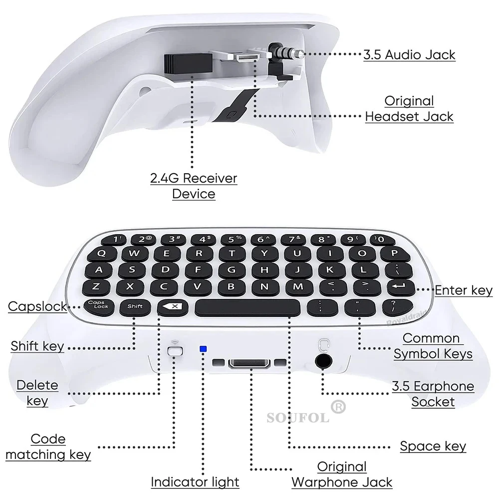 -Einfach zu bedienen.Schließen Sie die Tastatur einfach an den drahtlosen Xbox One Slim/Series S/Series X-Controller an und stecken Sie den 2,4-G-Empfänger in eine beliebige USB-Schnittstelle der Konsole.Dann können Sie mit Online-Playern chatten, wenn Sie das Spiel genießen.